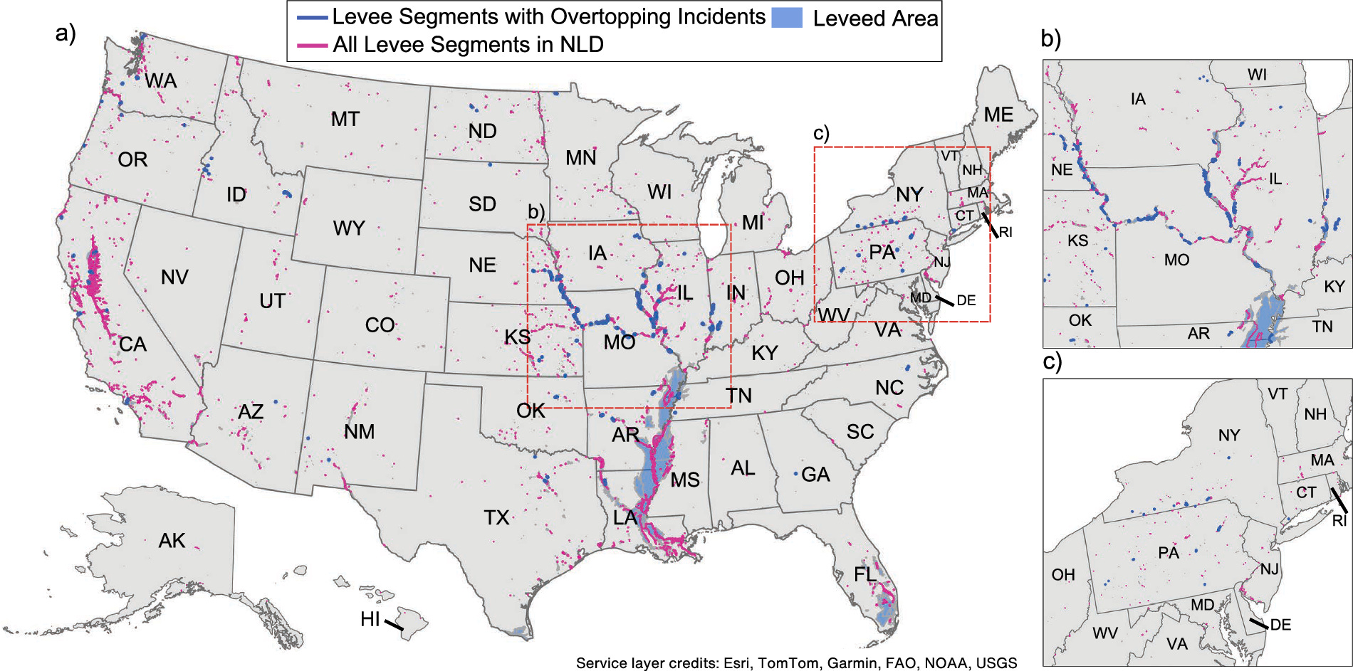 The Levee Loading and Incident Dataset - Overtopping (LLID-OT) version 1.0 provides data on 487 riverine levee overtopping events across the US from the past 15 years. You can access the data here.