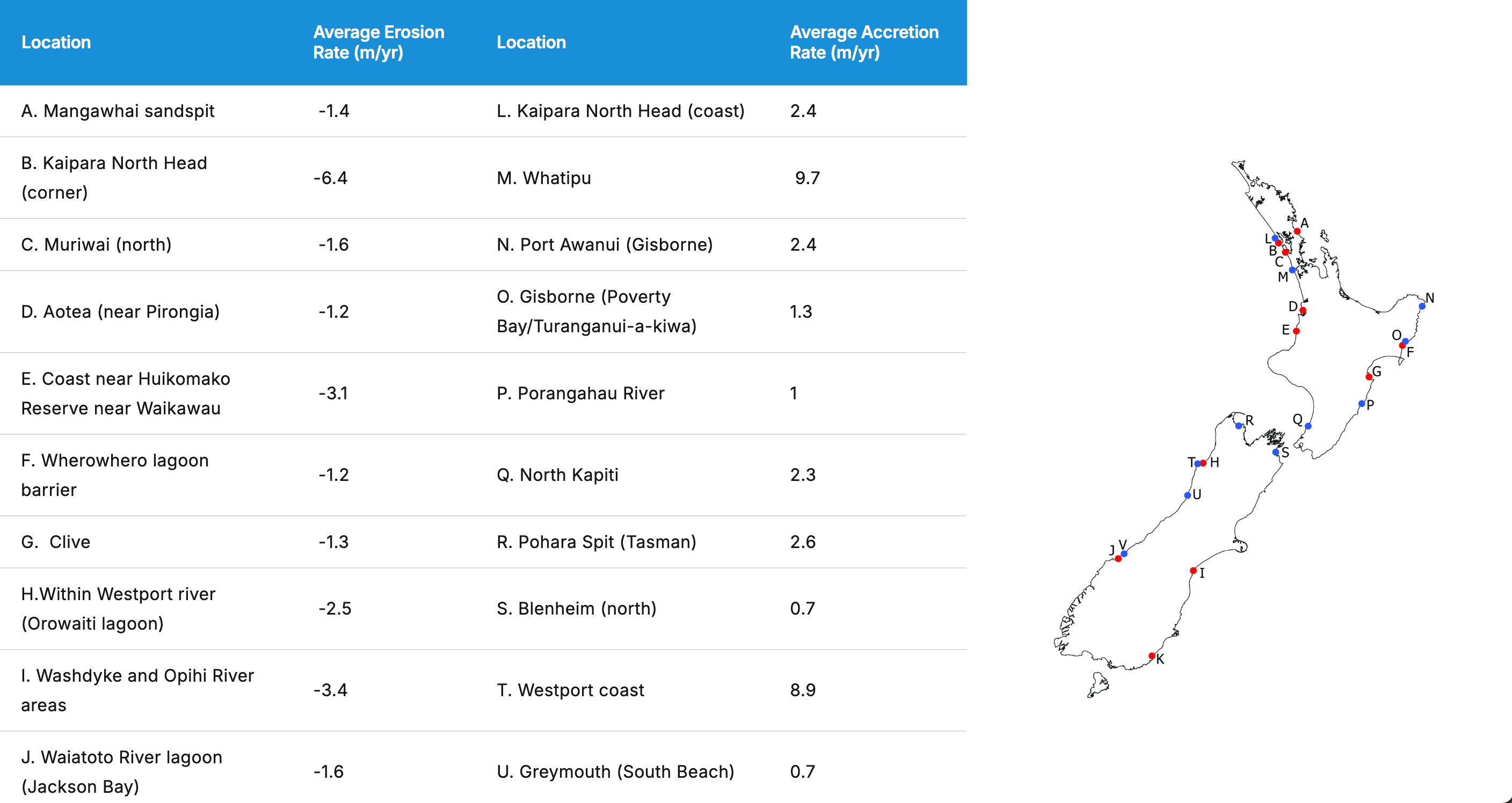 This coastal change dataset offers a bunch of data on coastal erosion, sediment transport, sea-level rise, and the impact of climate change on New Zealand’s coastlines.