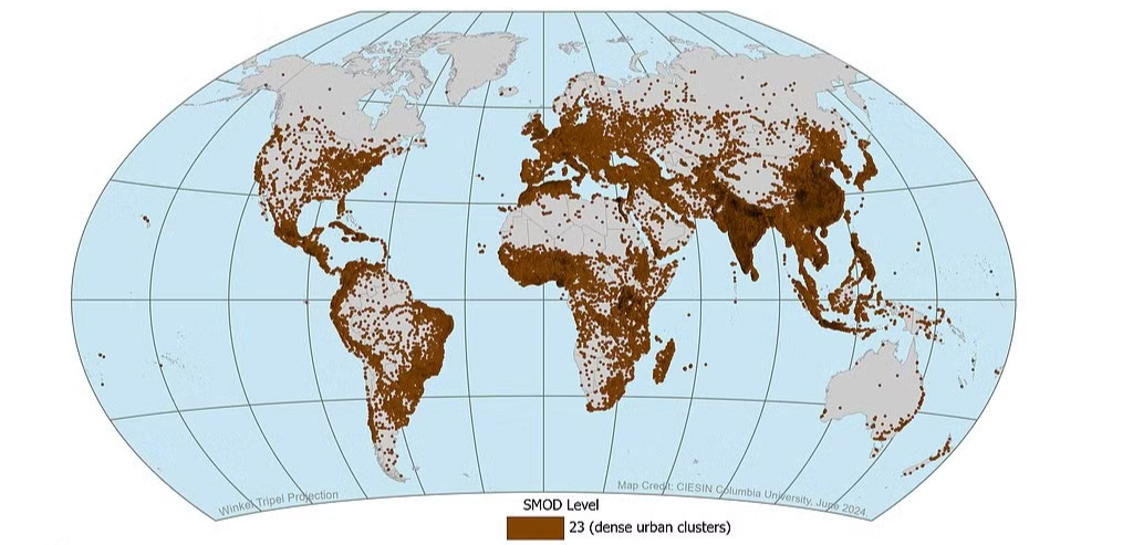 The new Global Urban Polygons and Points Dataset (GUPPD) from NASA SEDAC provides an updated global map of urban areas (as polygons and spatial points), which is derived from satellite images and geospatial population data.