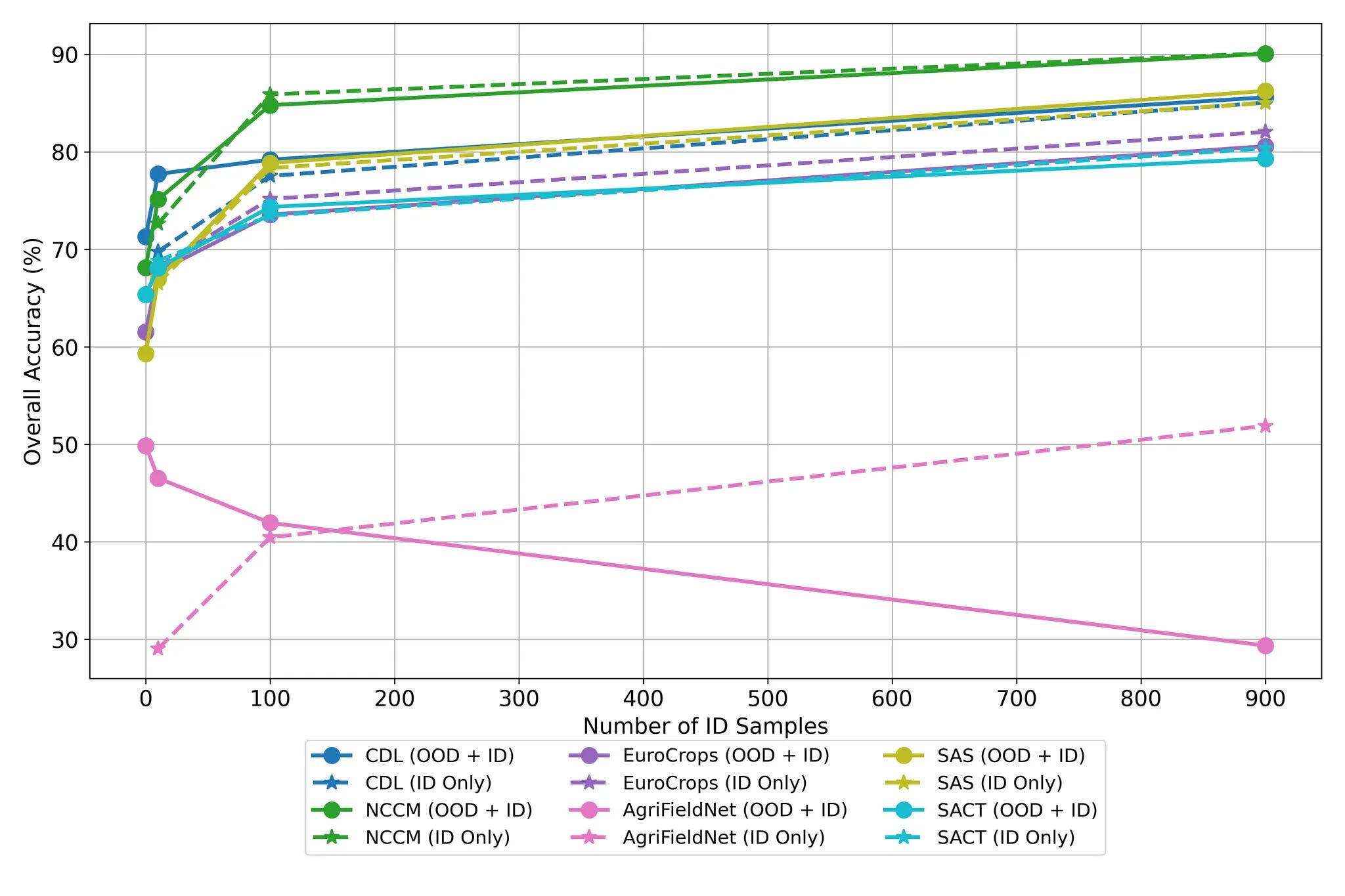 Their experiments showed that the model pre-trained on SSL4EO-S12 consistently outperformed the others across all regions, achieving up to 9% higher accuracy. For instance, on the CDL dataset in the United States, the SSL4EO-S12 model achieved an overall accuracy of 87.37%, compared to 77.87% for SatlasPretrain and 78.77% for ImageNet. Similarly, on China's NCCM dataset, the SSL4EO-S12 model reached 88.75% accuracy, outperforming SatlasPretrain's 80.56% and ImageNet's 82.71%.