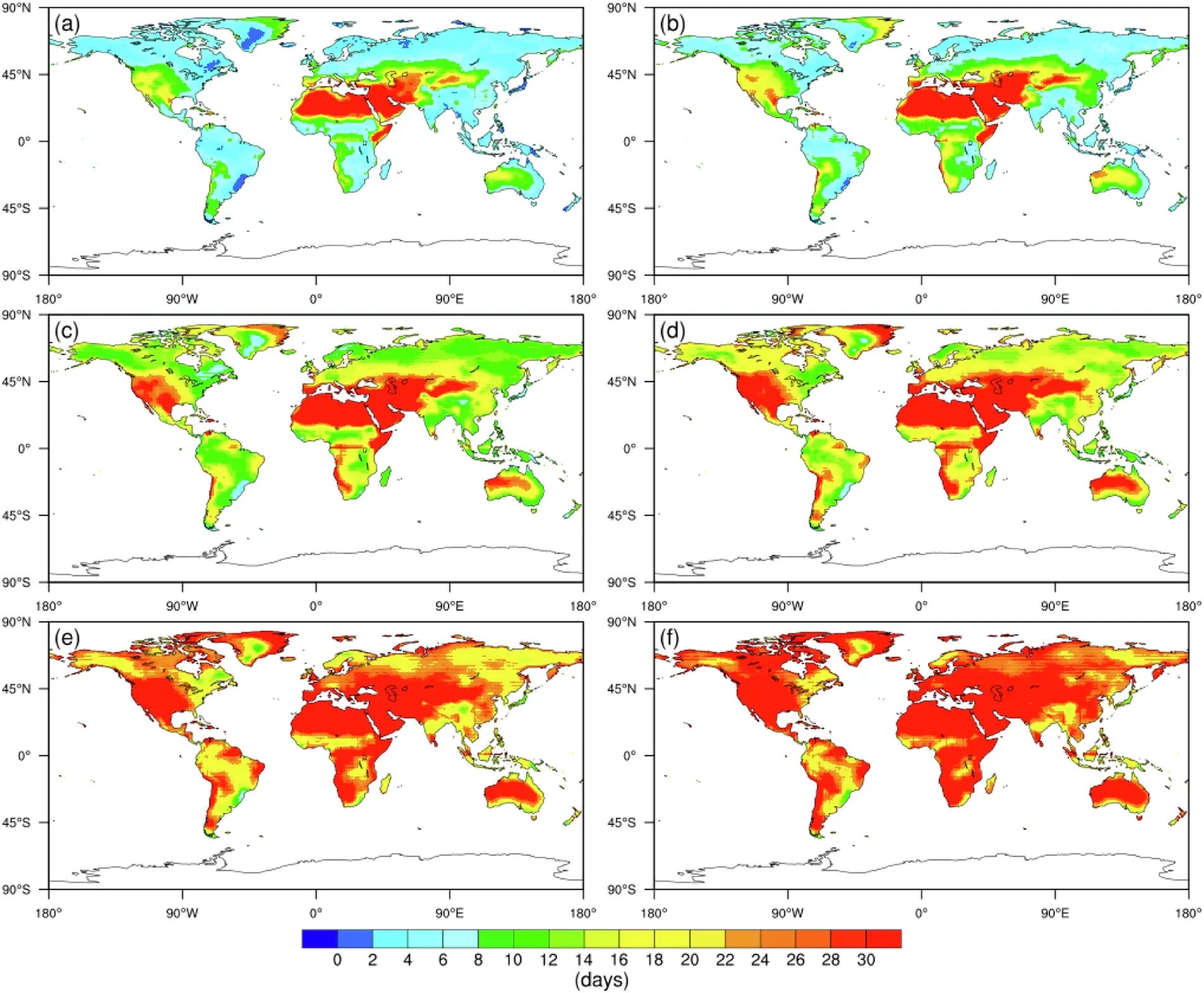 A new global dataset on compound hot-dry events (CHDEs) assesses the impacts of climate change on extreme weather conditions. It provides monthly data on the duration, precipitation intensity, and temperature intensity of CHDEs under various future climate scenarios (SSP1-2.6 to SSP5-8.5) for the 2050s and 2080s.