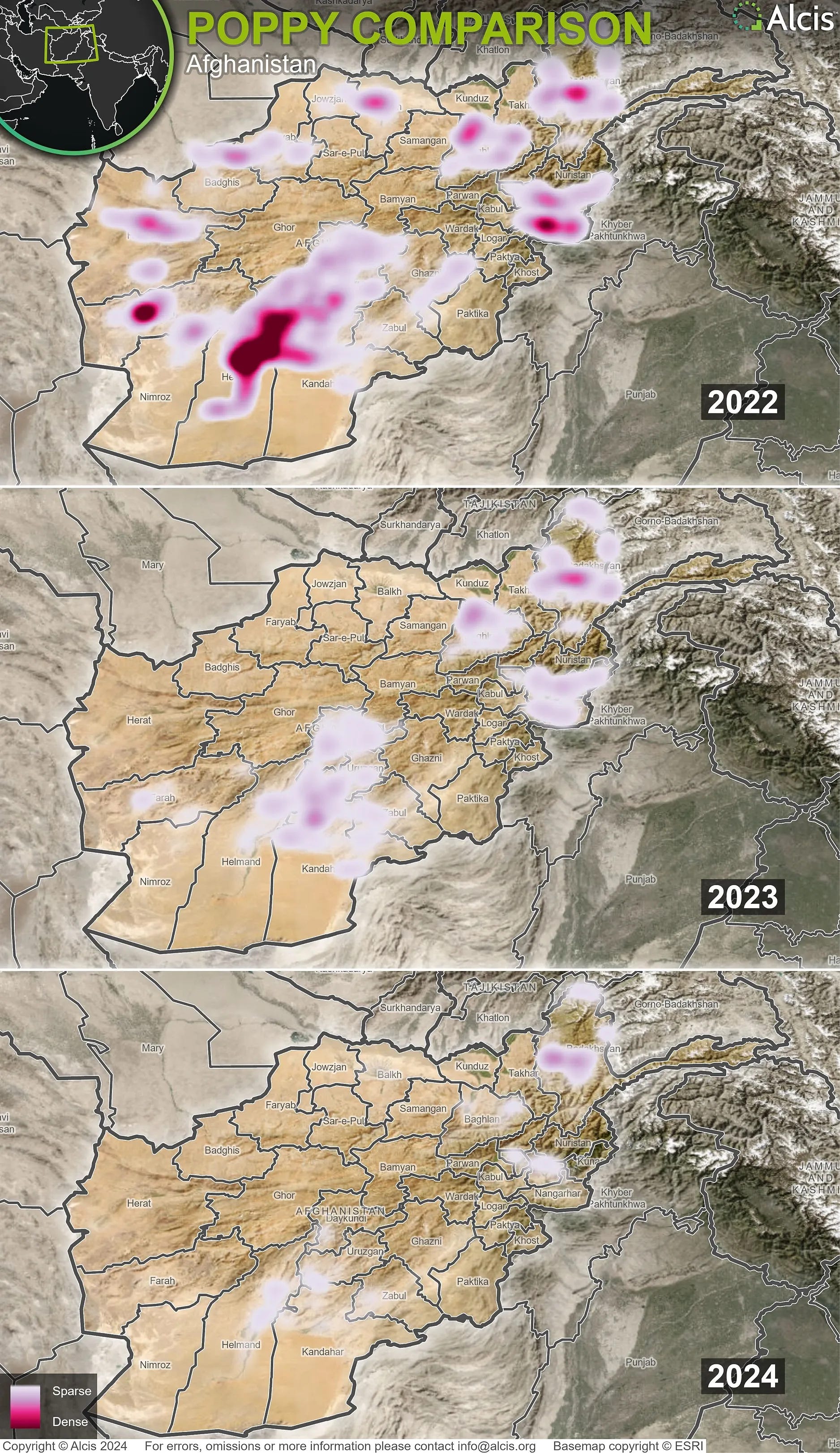ALCIS have analysed satellite images to assess Afghanistan’s opium poppy cultivation. They found that poppy production has dropped to record lows for the second year in a year, following the Taliban’s drug ban. Despite this drop in supply, opium prices have fallen over the last nine months.