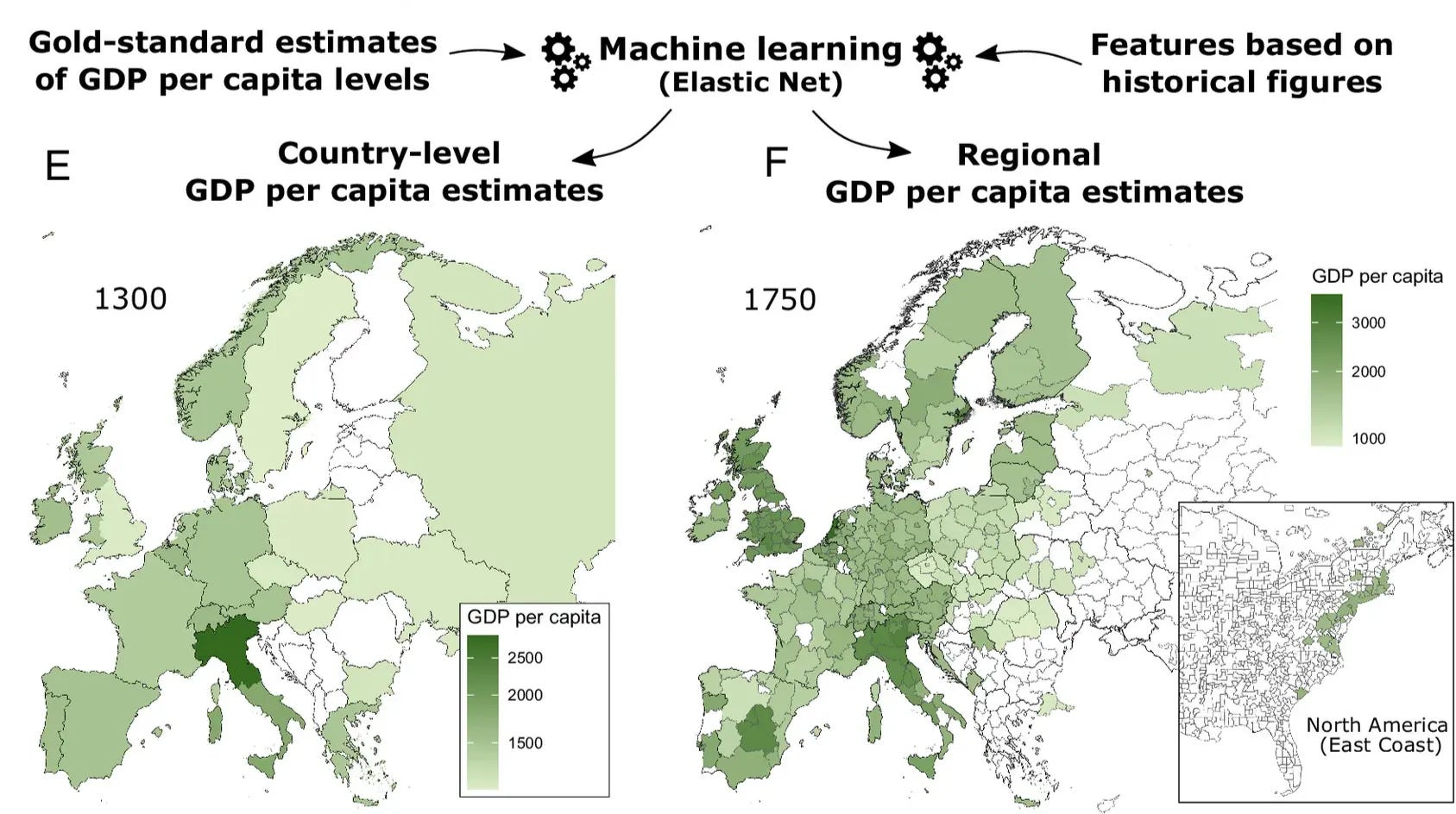 Their model was supposedly pretty accurate, explaining over 90% of the variation in GDP per capita. Their estimates matched known historical trends, such as Northern Europe's economic rise and the Atlantic trade routes' impact.