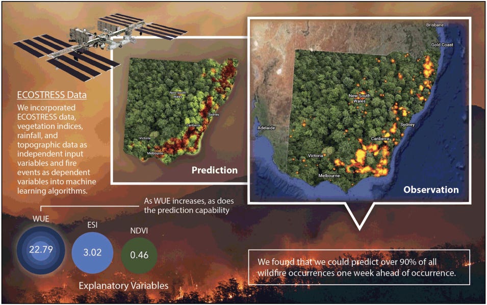 Wildfire Prediction: ECOSTRESS data predicted 90% of Australiaâs fires.