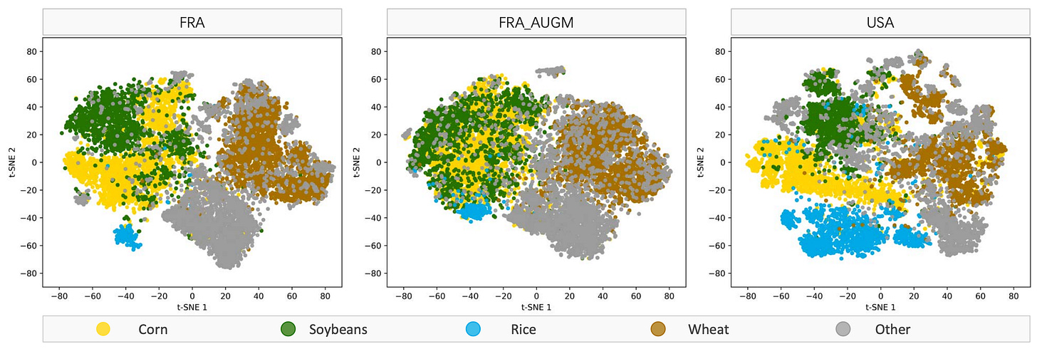 The researchers built CropGlobe, a dataset covering eight countries across five continents, and tested how well crop classification models trained in one place work in another. They found that using 2D convolutional neural networks on Sentinel-2âs multi-spectral time series data (basically, tracking how different light wavelengths bounce off crops over time) works surprisingly well. The 2D approach beats simpler 1D models because it captures relationships between different spectral bands and how they change together over time. When crops develop earlier or later due to climate differences, these patterns shift but stay recognisable. The sweet spot turned out to be 5-day observation intervals rather than longer windows, since this captures subtle changes in crop growth stages.