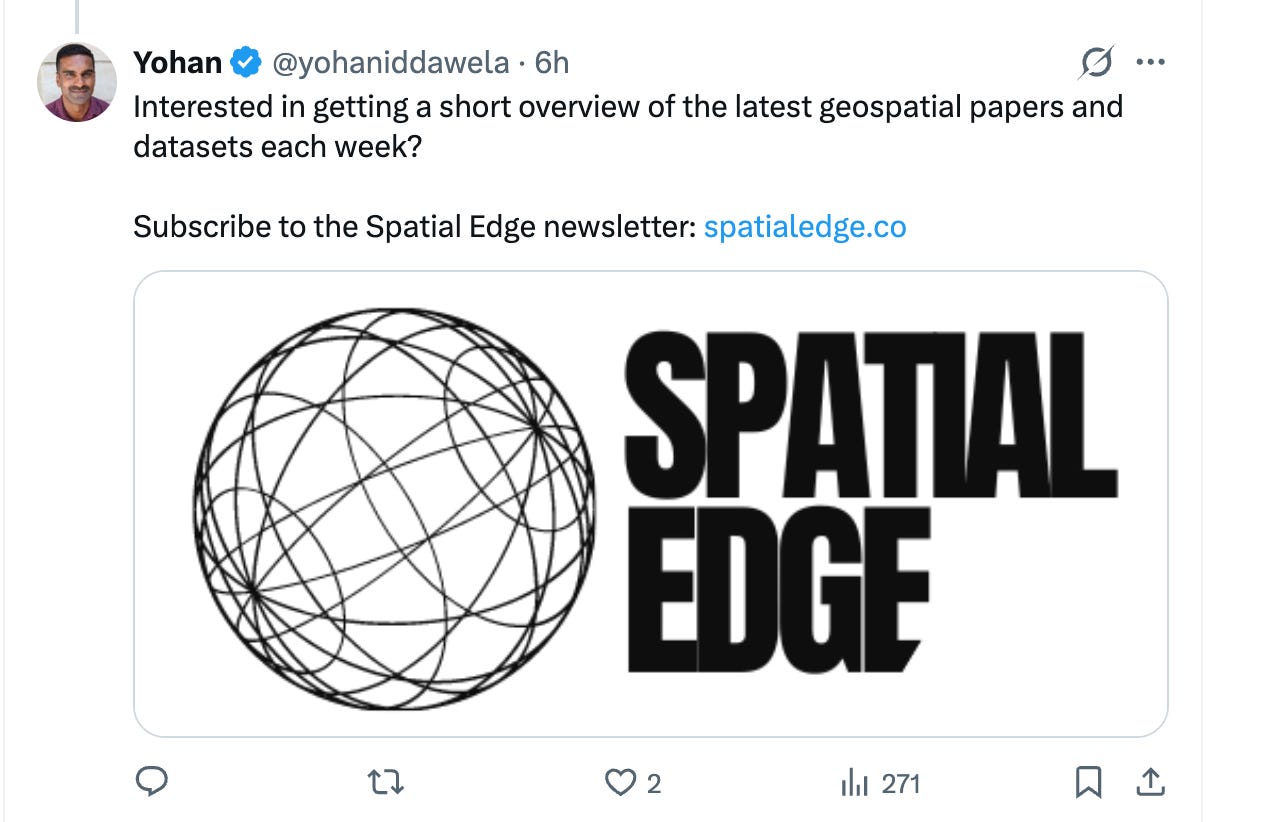 My strategy to gain subscribers at the start was to leverage ādiscoverabilityā from Twitter (yes it was called Twitter back then). I essentially posted 4 threads a week on Twitter on a range of geospatial topics: my favourite datasets, new papers, new methodologies, and so on.
