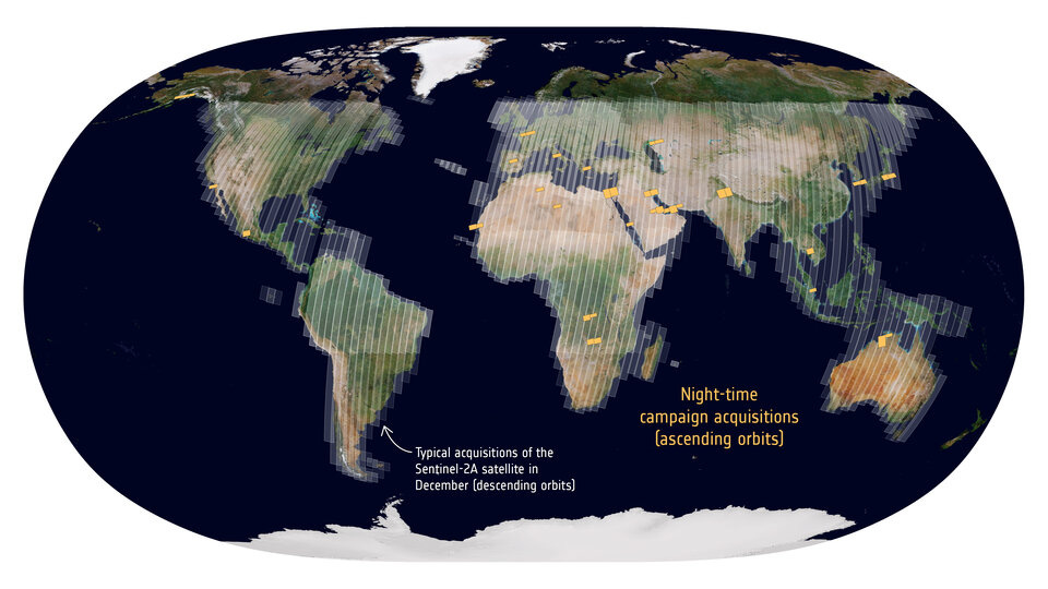 Satellite Imaging: Sentinel-2A captures Earth in night mode.