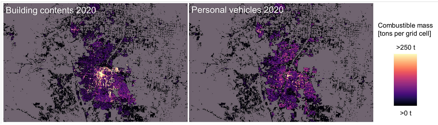COMBUST provides a first-of-its-kind, gridded estimate of the combustible mass of the built environment across the conterminous United States from 1975ā2020, mapped at 250 m resolution. The dataset includes historical backcasts, material-specific layers, and a companion product (COMBUST Plus) for analysing exposure of buildings, population, and biomass. You can access the data here.