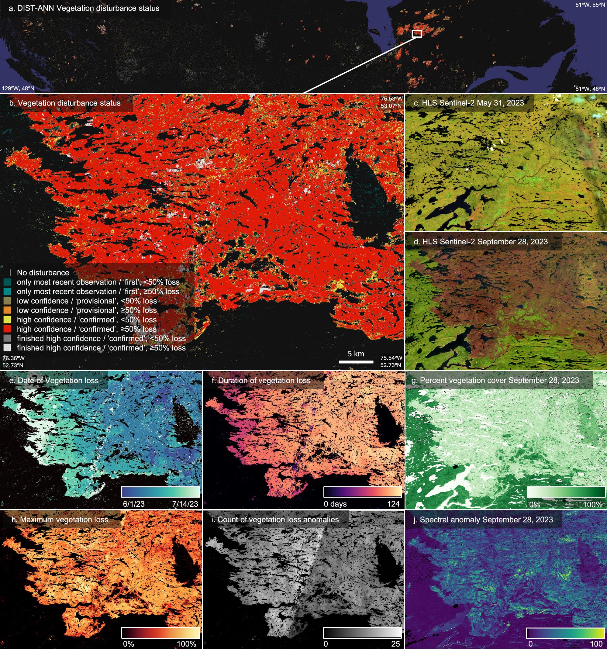 We often struggle to track land cover changes in real time due to cloud cover and long gaps between satellite passes. A new system called DIST-ALERT aims to solve this by leveraging the Harmonized Landsat Sentinel-2 (HLS) dataset. This combines data from NASA and USGS Landsat 8/9 with ESA Sentinel-2 satellites to create a unified 30-metre resolution time series. By blending these sources, the system achieves a revisit rate of just 1 to 4 days globally. It works by comparing every new pixel observation against a rolling baseline of the previous three years within a 31-day seasonal window. This allows the system to flag anomalies almost immediately, detecting everything from logging and mining to insect damage and landslides without waiting for annual composites.