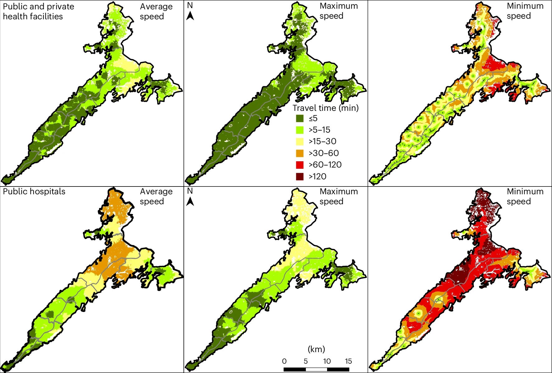 The researchers used geospatial data on roads, land cover, elevation, and travel speeds to calculate how long it takes women to reach the nearest facility offering childbirth care. They modelled 20 different travel-time scenarios and matched this with population and wealth data.