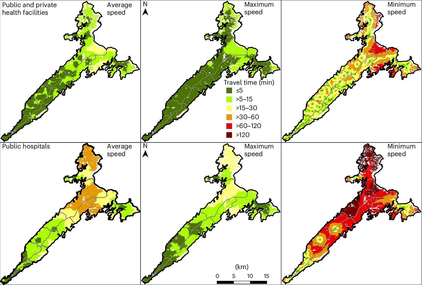 Maternal deaths are still high in Guinea, and access to skilled birth care remains pretty important. The study makes it clear that physical distance is a poor proxy for access in urban Africa. Travel time, especially under real-world traffic and infrastructure conditions, is a better metric.